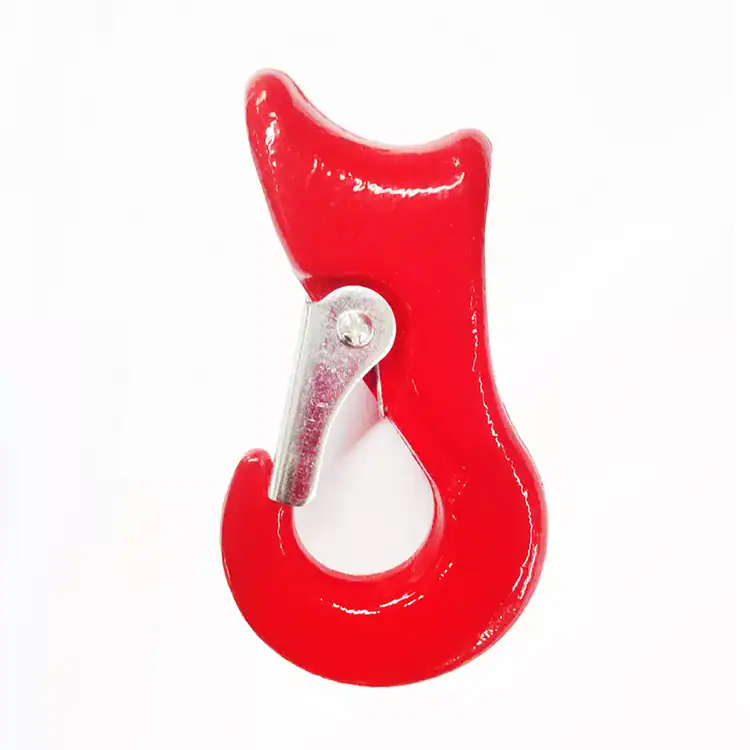 Made from durable alloy steel, this hook has a sliding eye for easy attachment and a choke design for secure gripping.